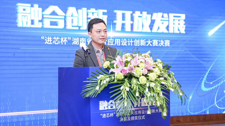 湖南進芯電子科技有限公司副總經理易峰致辭時表示,此次芯片應用設計創(chuàng)新大賽是學生展示自我的平臺,極大的促進了產學研的結合,促進了成果轉化、拓展了芯片應用場景,為集成電路行業(yè)人才培養(yǎng)做出了積極貢獻。最后他預祝參賽選手取得好成績,預祝此次大賽取得圓滿成功。