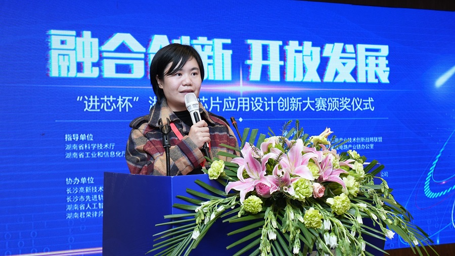 評審結束后,長沙工業(yè)和信息化局副局長張芬發(fā)表重要講話。她表示集成電路產業(yè)的高質量發(fā)展離不開產業(yè)鏈上各企業(yè)的協同創(chuàng)新,本次芯片應用設計創(chuàng)新大賽秉承著“用心打造產業(yè)生態(tài),推動行業(yè)協同發(fā)展”的精神,重點挖掘芯片創(chuàng)新應用領域的優(yōu)質項目和專業(yè)人才,這是一次多方共贏、成效倍加的有益嘗試。最后她誠摯感謝行業(yè)人士和各大高校對本次比賽的大力支持,同時也真誠地希望越來越多的企業(yè)家和專業(yè)技術人才選擇留在長沙,為長沙集成電路產業(yè)發(fā)展添磚加瓦。