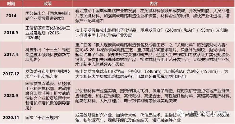 大基金之外,近年來國家還推出了一系列政策來促進(jìn)半導(dǎo)體材料行業(yè)的發(fā)展。