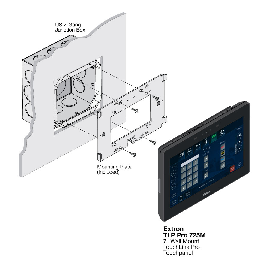Extron TLP Pro 725M 是一款具有多種增強(qiáng)特性的 7" 墻面安裝型 TouchLink? Pro 觸摸屏。我們這款更新的 TouchLink Pro 觸摸屏采用全新的高性能四核處理器、8 倍高的內(nèi)存以及帶防刮擦和抗污跡的康寧?大猩猩玻璃?的 1024x600 高分辨率電容式觸摸屏。TLP Pro 725M 還具有方便的以太網(wǎng)供電 (PoE) 功能,可通過單根以太網(wǎng)電纜接收電源及進(jìn)行通信。它非常適用于需要一款外觀時(shí)尚并可完全定制界面的墻面安裝型觸摸屏的應(yīng)用環(huán)境。