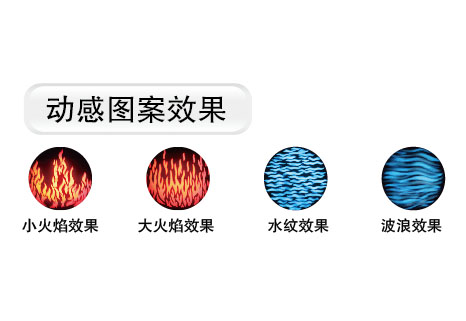 1 個(gè)火焰型效果盤(可雙向變速旋轉(zhuǎn)),火焰型圖案片可換