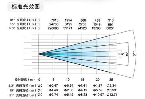 Beam:光束角度 5.3° Wash:線性變焦幅度15°~31°(光束角度)