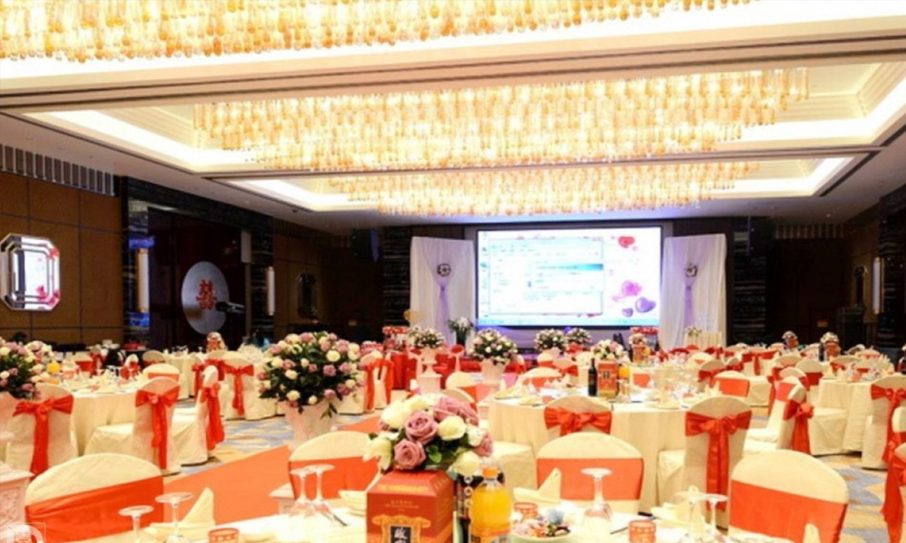 1、宴會大廳:滿足婚慶、報(bào)告型會議、文藝表演、高清視 頻展播、新聞發(fā)布、教學(xué)培訓(xùn)等,系統(tǒng)采用:美國Ev音響 系統(tǒng)、美國SHURE無線話筒、P4高清LED大屏幕、智能控制 系統(tǒng)。