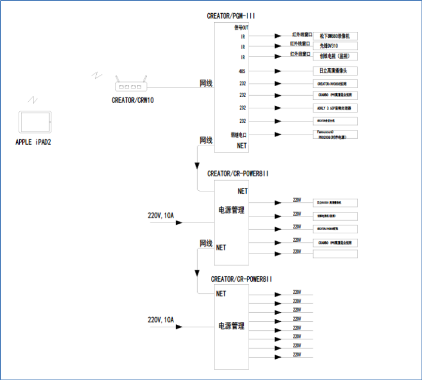 整個(gè)系統(tǒng)的控制,我們選配中外合資CREATOR(快捷)中央控制系統(tǒng)和美國(guó)ASHLY/3.6sp數(shù)字音頻處理中心進(jìn)行配合控制,主要完成系統(tǒng)中的高清LED大屏幕控制、大屏幕圖像的切換控制、系統(tǒng)音量大小控制、各種場(chǎng)景的模式切換、高清攝像頭控制、等其它各種數(shù)據(jù)的切換以及房間的燈光照明控制,房間窗簾控制等環(huán)境設(shè)備的控制,由無線彩色觸摸屏和中央控制器通過編程,實(shí)現(xiàn)人性化集中傻瓜式中央控制系統(tǒng),無須專職人員守候,主持人員在會(huì)場(chǎng)就十分輕松通過無線彩色觸摸屏控制系統(tǒng)中的設(shè)備,也可通過網(wǎng)絡(luò)實(shí)現(xiàn)異地控制房間的設(shè)備。